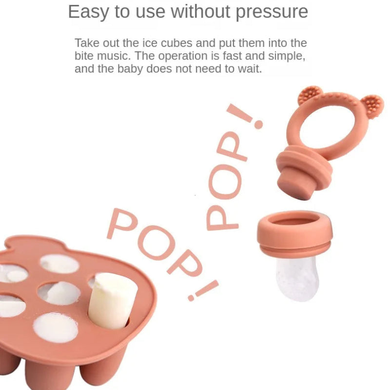 Offrez à votre tout-petit des encas glacés 100 % maison avec notre moule à sucettes glacées. Parfait pour les poussées dentaires, les goûters d’été ou l’introduction en douceur des fruits, ce kit ludique transforme vos purées, yaourts ou jus préférés en mini glaces adaptées aux bébés.